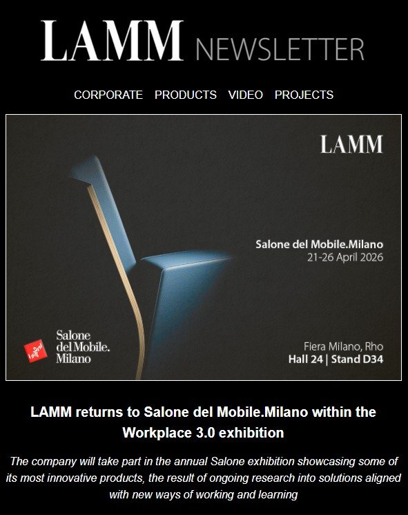 LAMM returns to Salone del Mobile.Milano. From 21 to 26 April (Hall 24, Stand D34), the Italian company – a leader in the production and installation of seating systems for conference halls, auditoriums, universities, cinemas, theatres, and collective spaces – will be present at the world’s largest international trade fair dedicated to furniture and design. The brand will welcome visitors while presenting some of its most advanced solutions: seating and study desks conceived to meet contemporary design requirements and aligned with the ongoing evolution of workspaces. The participation is further enhanced by the presence of its sister company Caruso Acoustic, manufacturer of sound-absorbing panels for acoustic and visual comfort.